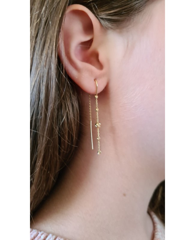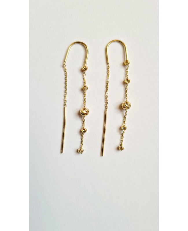 Cercei de aur galben 14K femei/dama cu Bilute si lanturi mobile.