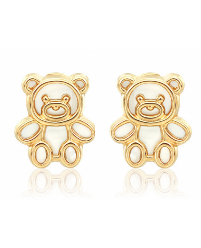 Cercei pentru copii si fetite din aur galben de 14K, in forma de ursuleti cu interior din sidef.