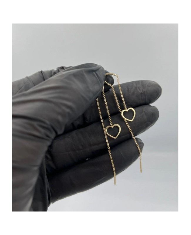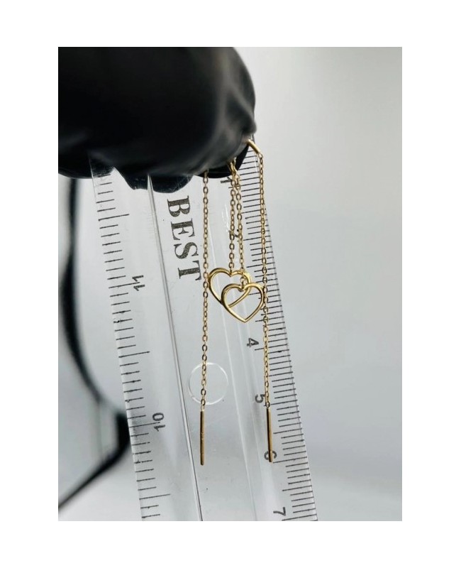 Cercei pentru fetite si dama din aur galben de 14K cu un lant de 3 cm in fata si 6 cm in spate, pandantiv Inimioara 8mm.